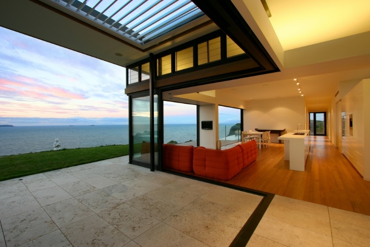 On a remote ridge stretching between the Hauraki Gulf in Northern New Zealand and the breathtaking landscape of Waiheke Island sits the Korora House, designed by Daniel Marshall Architects.