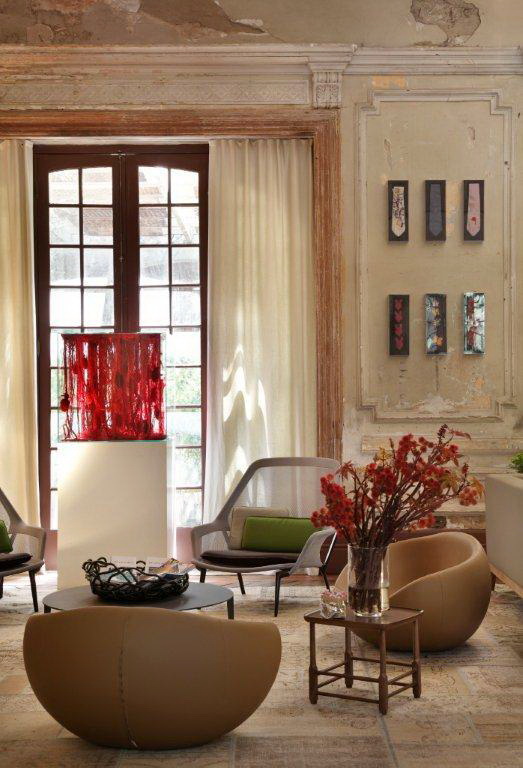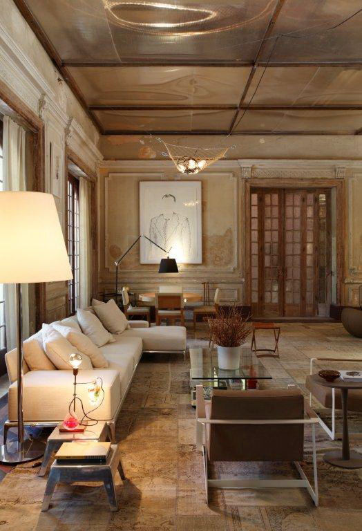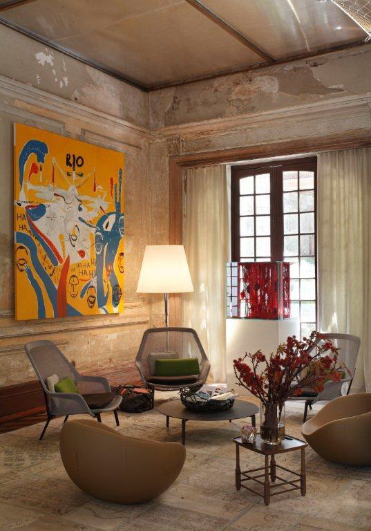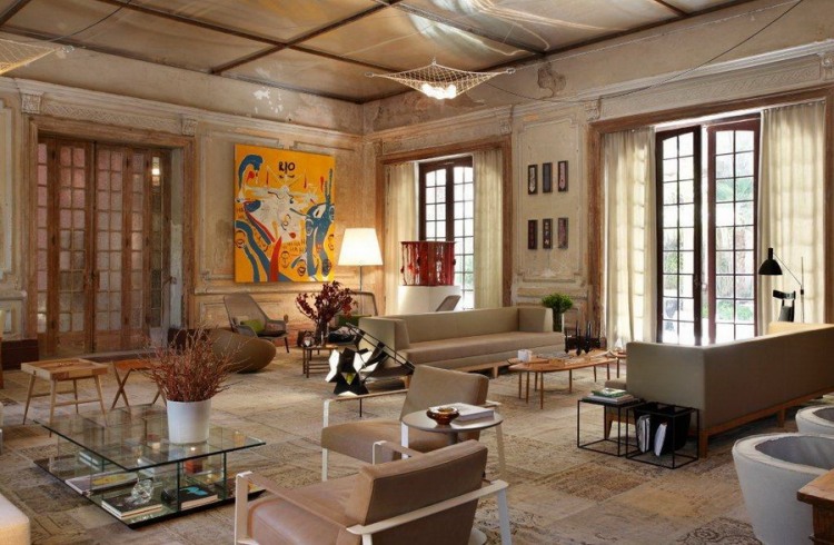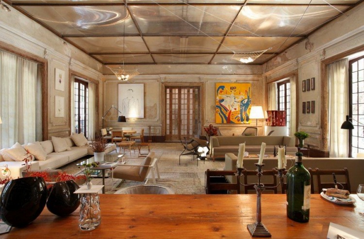 Original retro open-space interior design with several modern furniture pieces. The painting on the wall is very refreshing. Get inspired!