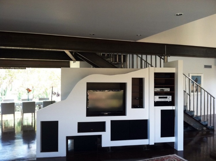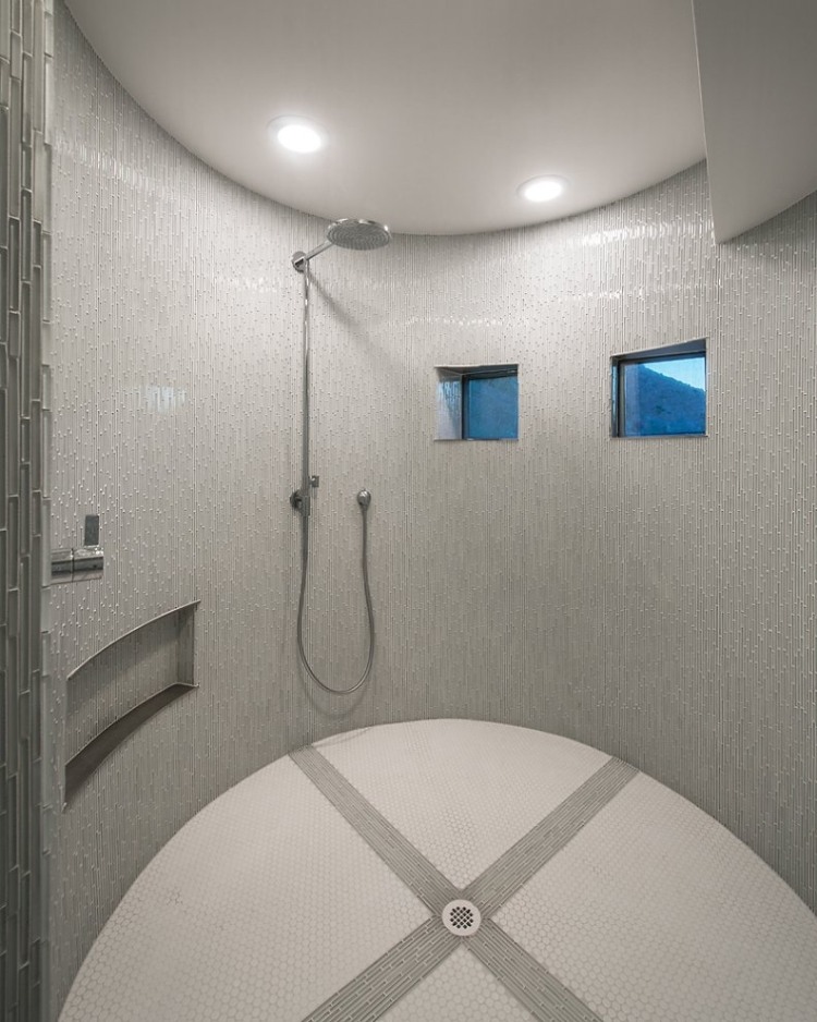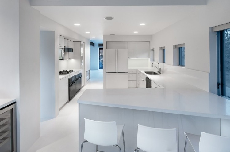 A single physician purchases a home because of the site’s amazing views. The house is somewhat “modern”, but contains several physical features the owner would rather weren’t there. The space does not flow well with each use separated by three main elements: a sunken bar; an entertainment center, and a large masonry fireplace. There is almost no connection between living spaces and the exterior patio. We begin by removing everything in the way, creating a more open space, better circulation, enhanced functions, and improved views. We provide a three-panel telescoping door to the patio. We add a new exterior patio, pool, and spa. A new exposed laterally bracing membrane in the living room, required to replace the fireplace’s structural function, is designed parametrically utilizing the Owner’s favorite image of a skin cell. She requests the interiors be minimal, clean, and white. We happily oblige.