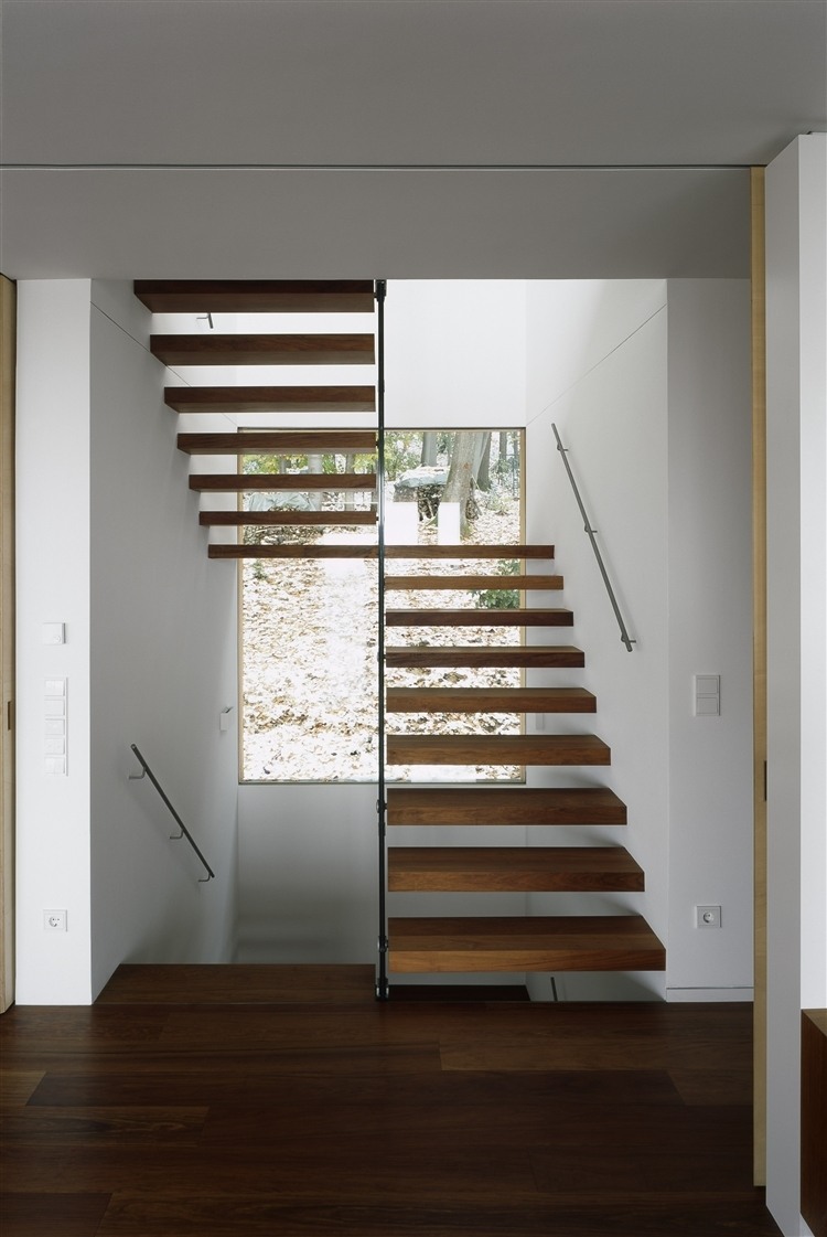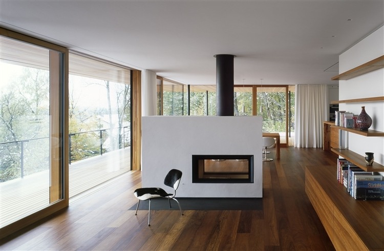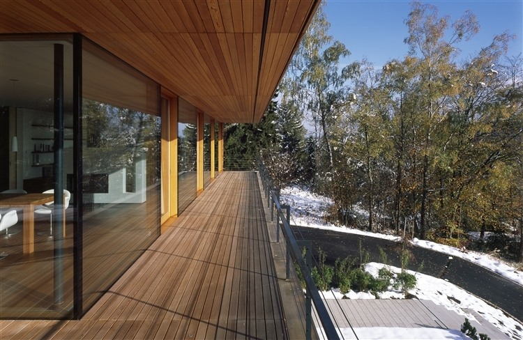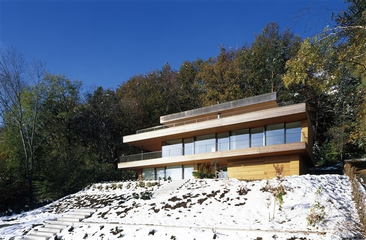 The three-floor dwelling house designed in 2012 by k_m Architektur is situated on the slope, edge of a forest on the outskirts of Heilbronn, Germany.