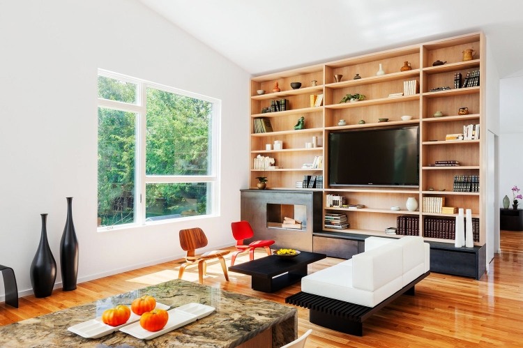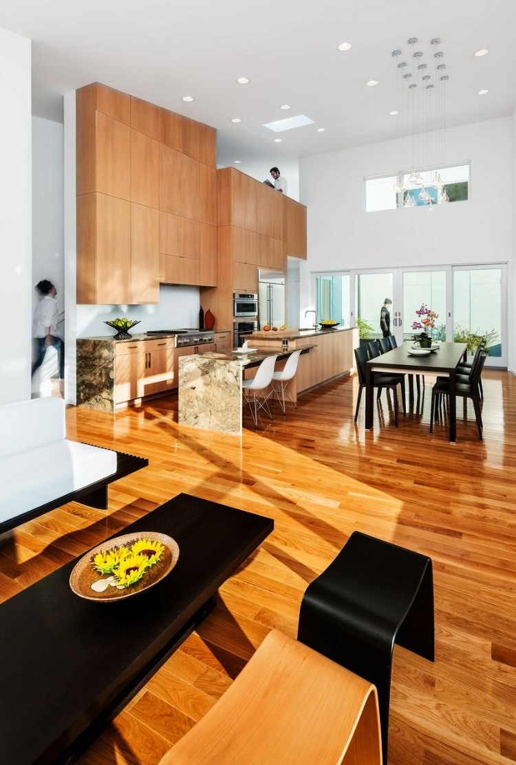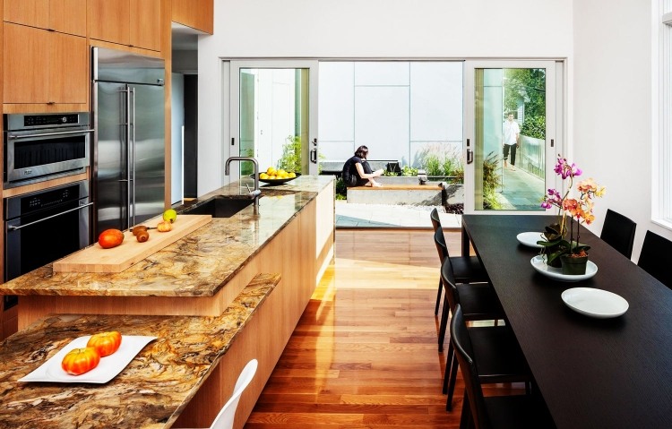 The main living area is located adjacent to the courtyard and a set of glass sliding doors allow the living area to extend out into the courtyard.