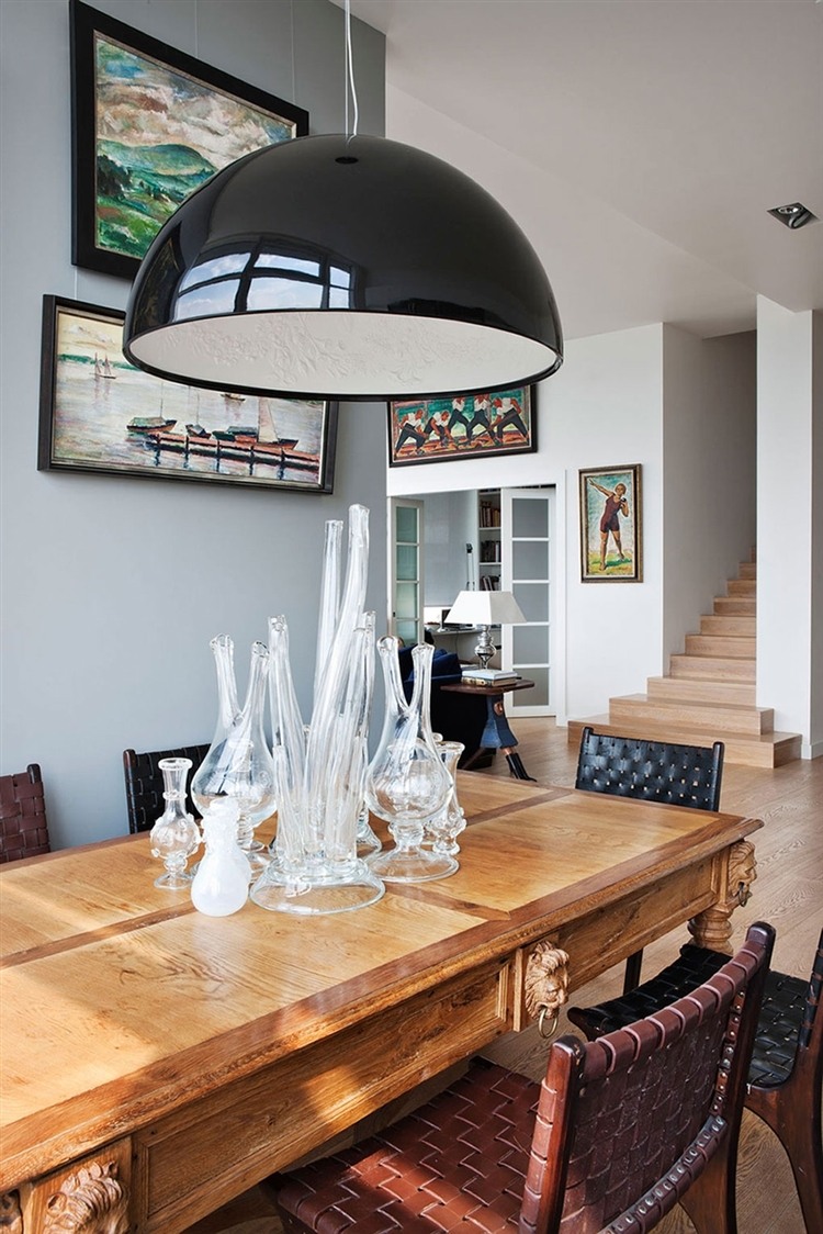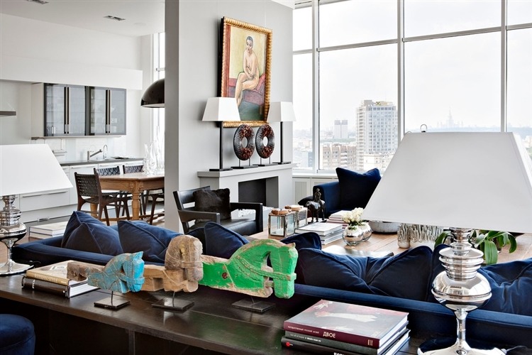 Beautiful eclectic apartment – duplex designed by Russian interior designer Ksenia Nikitina situated in Shabolovka, Moscow.