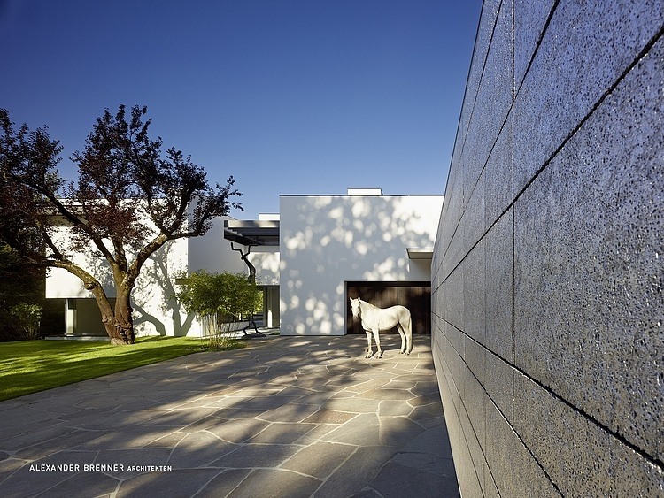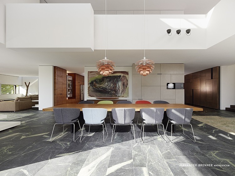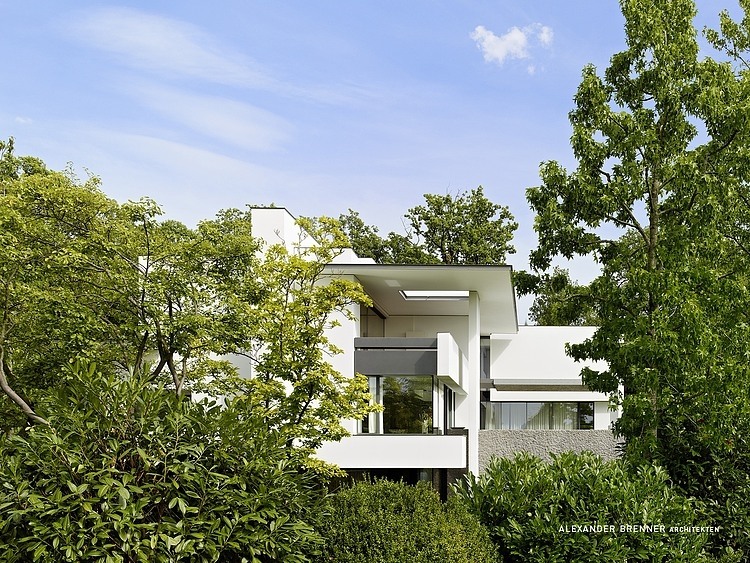 Contemporary villa situated at the edge of a forest in the south of Stuttgart, Germany, was designed in 2012 by architect Alexander Brenner.