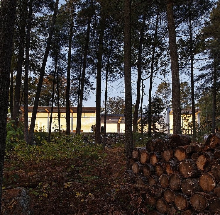 Located in Canada’s beautiful Muskoka region, the Carling Residence was built for a young couple looking to leave the city behind. The 3600 square foot home is set into a rustic forest on the shores of the Georgian Bay. The clients’ aspiration for their new permanent residence was to create a comfortable, modern and sustainable home that would respect, and become part of, the terrain of their 26-acre lot.