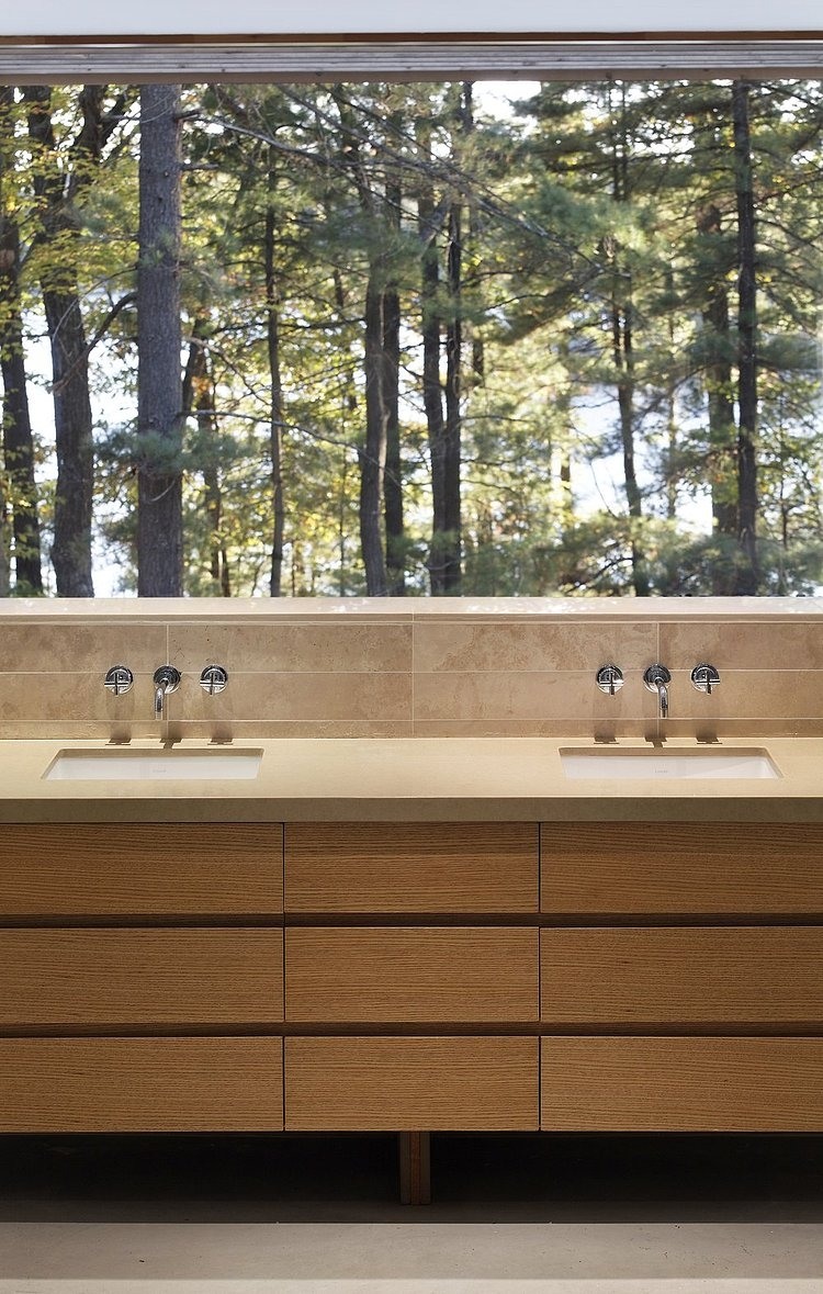 Though the house is a new insertion into a pristine landscape, the design allows it to reside as though it has always been a part of the land.