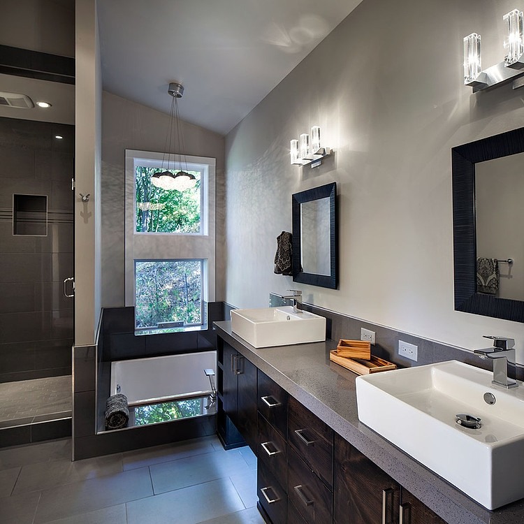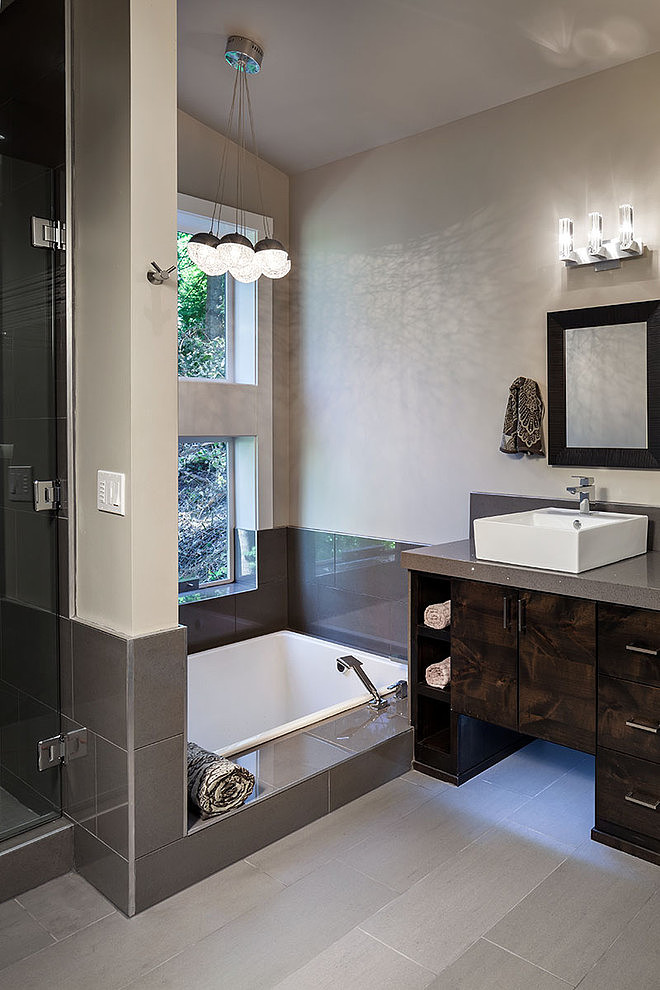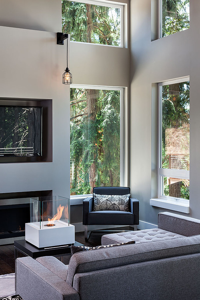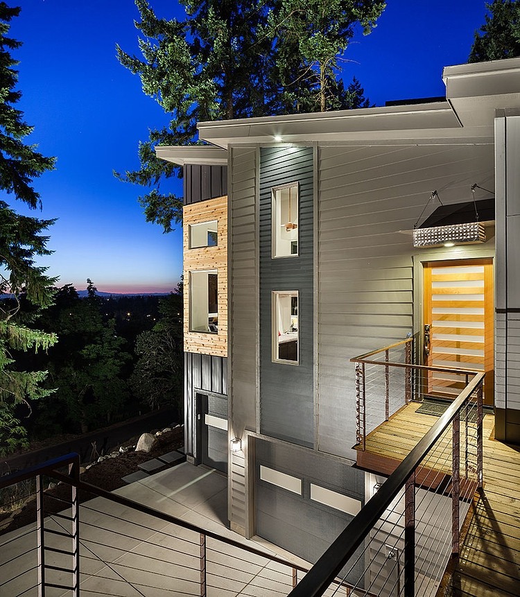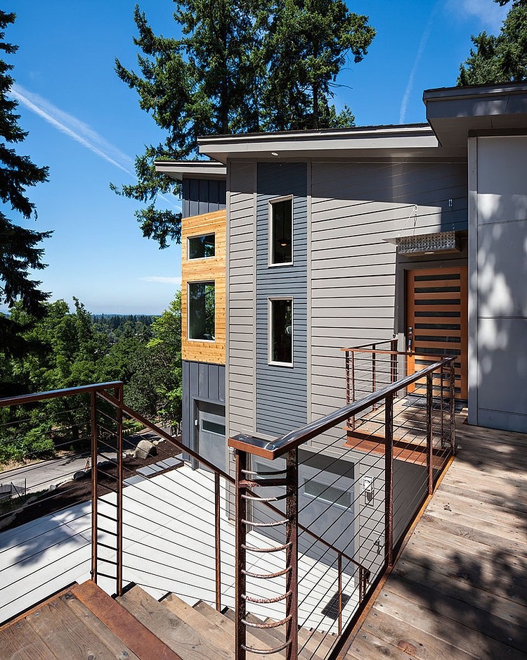 This modern industrial retreat designed by Jordan Iverson Signature Homes is situated amongst the trees at the top of a hilltop in Eugene, Oregon.