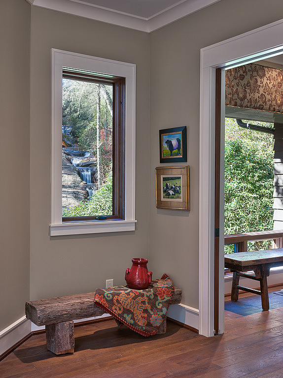Surrounded by forest, the Knob Creek Residence designed by Platt Architecture is located in Cashiers, North Carolina.