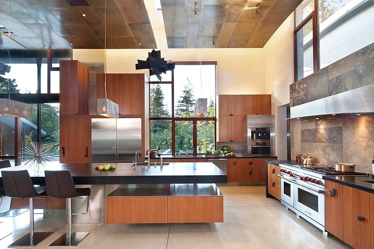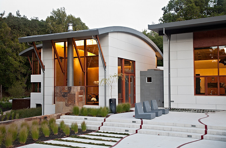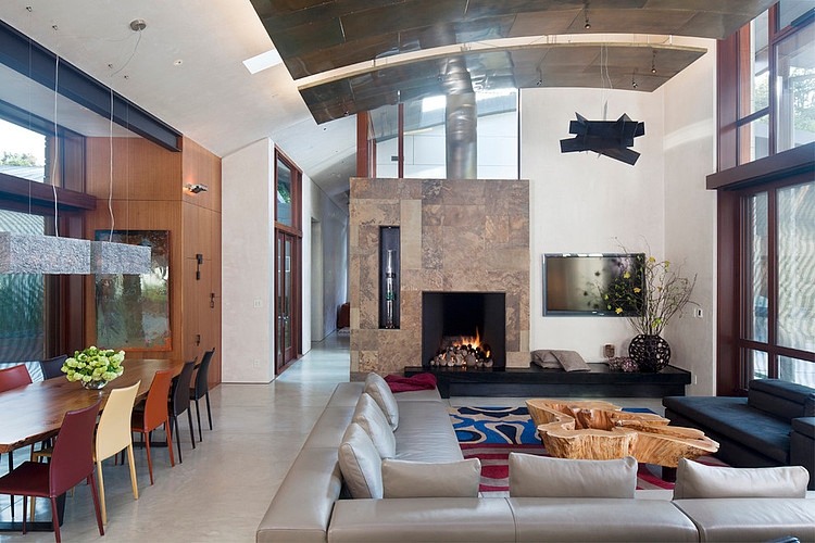 Defined by a series of inter-connected vaulted roof structures this contemporary single family residence recently designed by WA design is located in Saratoga, California.