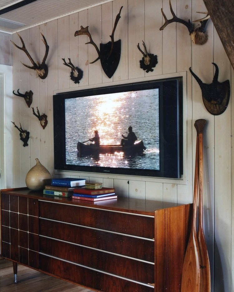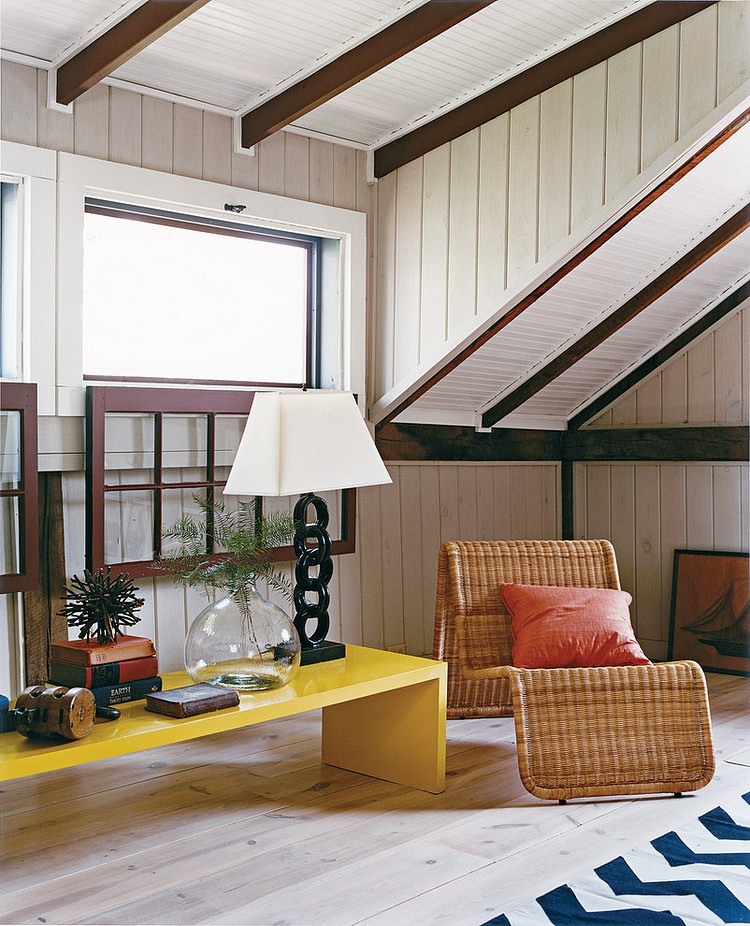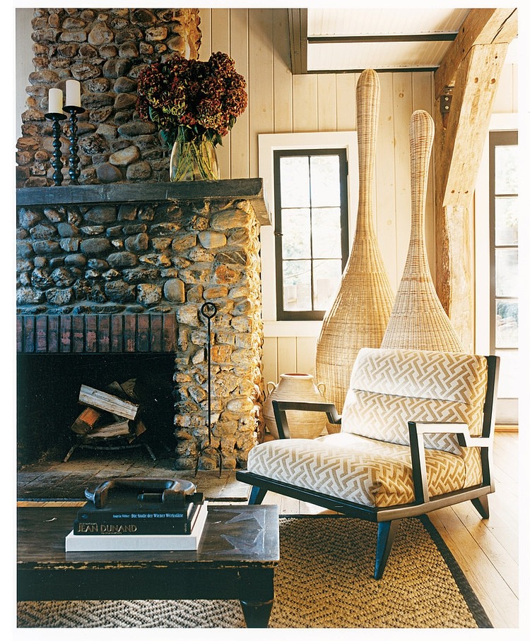 This lovely 1917 rustic country home in the Finger Lakes region of Upstate New York was designed by New York’s interior designer Thom Filicia. Much of the furniture, fabrics, and floor carpetings are Filicia’s creations, including a 10-foot-long sofa made just for the living room.