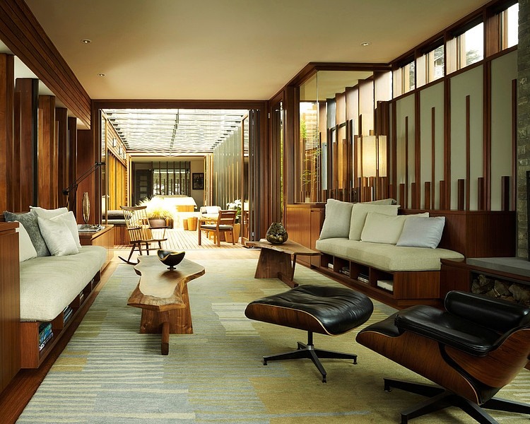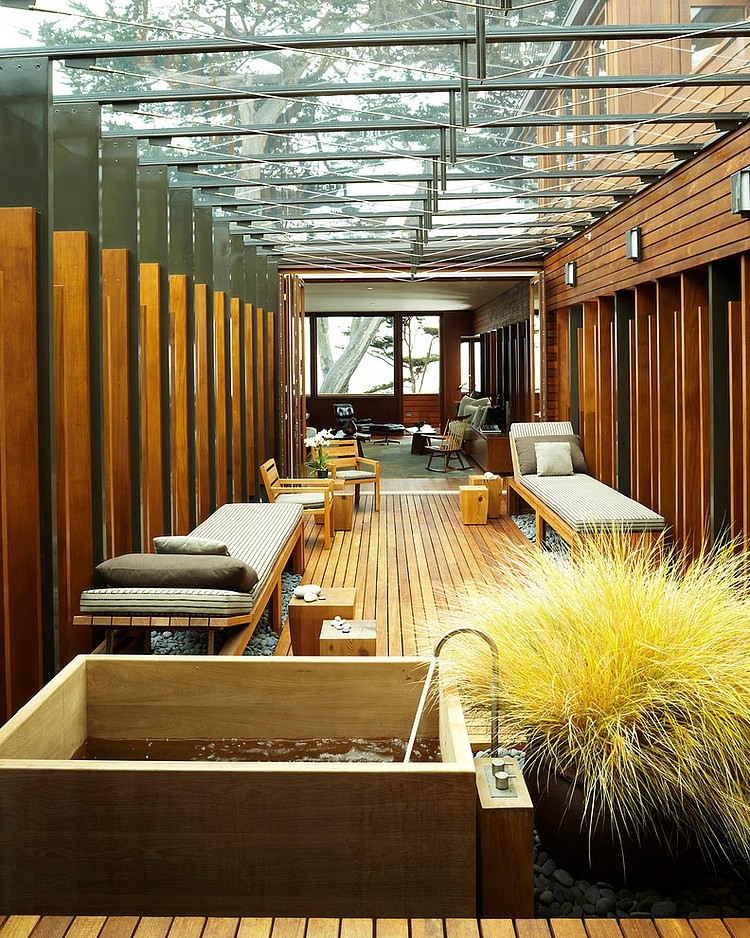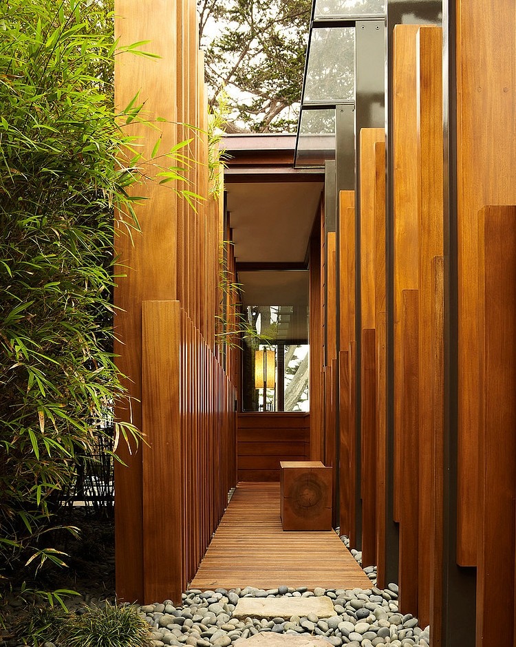 Minimalist Asian residence designed by Dirk Denison Architects located on a dense site facing Carmel Bay and the Pacific Ocean.