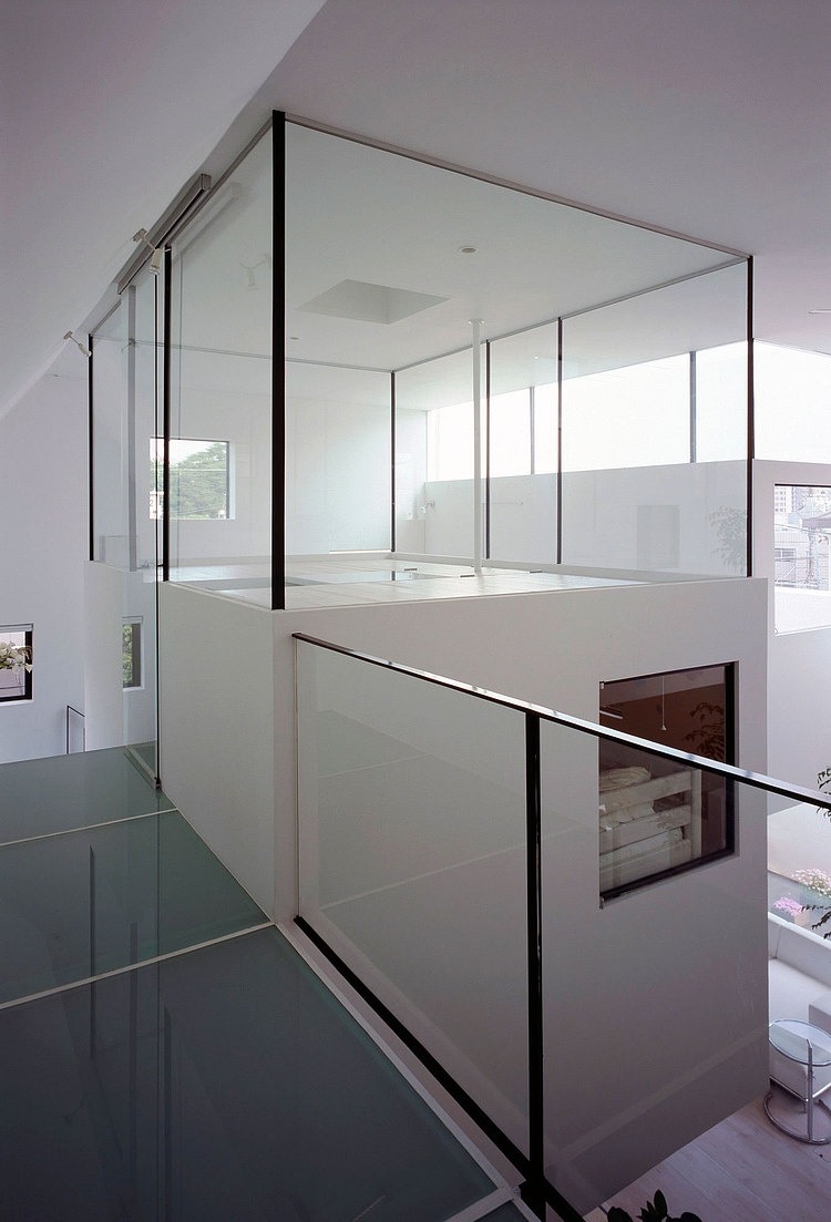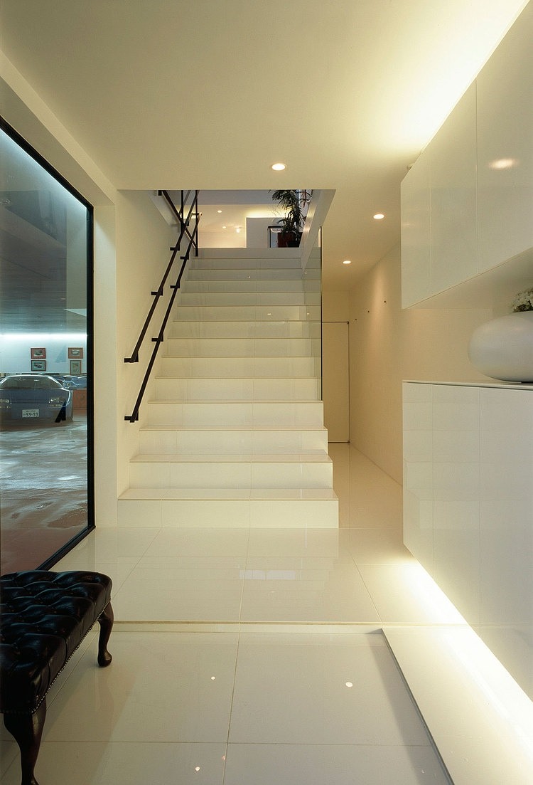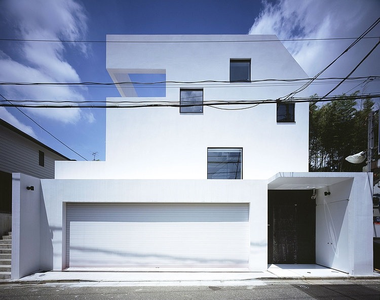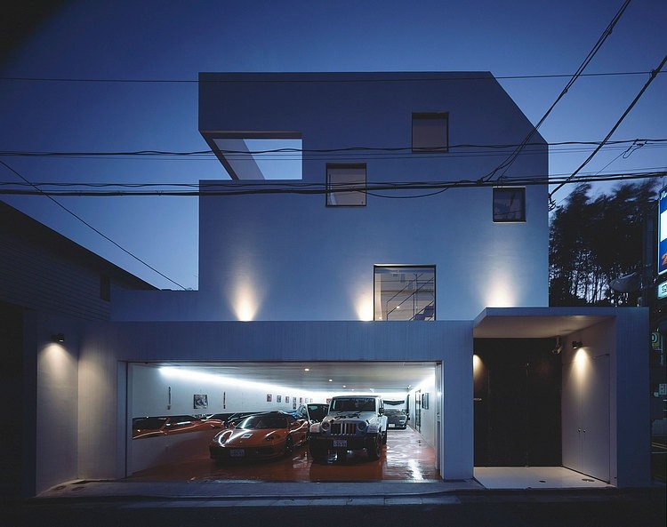 Located in Tokyo, Japan, this contemporary minimalistic residence was designed by No. 555 Architectural Design Office for a sport car enthousiast.