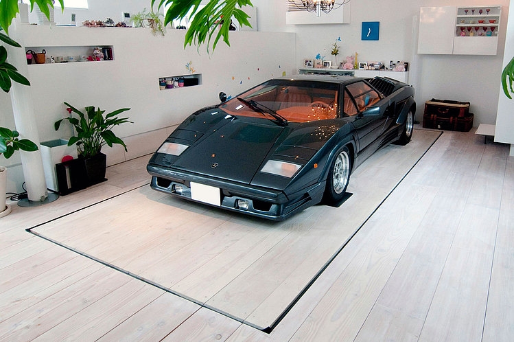 Utilizing the entire basement, nine cars are able to be parked. Lamborghini is my favorite, by a custom-made lift is a lift to the living room floor. When the lift is lowered, making the system closed other movable floor.