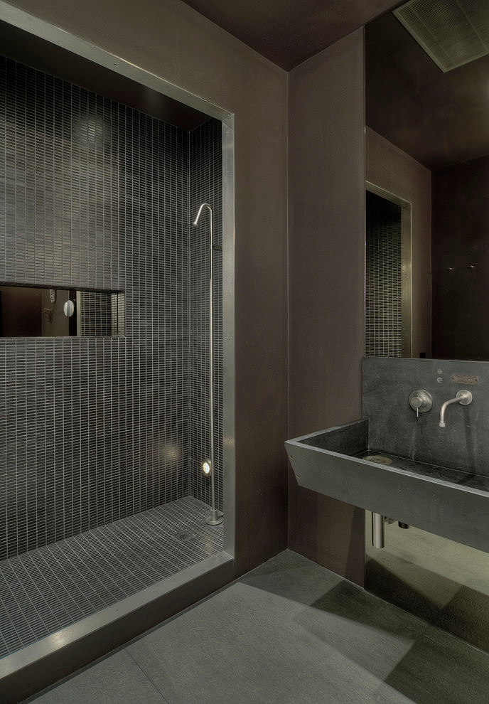 Located on Mercer Street in SoHo, this loft is on a low floor and has little natural light. A partial height feature wall serves a dual purpose: creating a subtle but distinct transition from public to private and bringing natural light and air into the private spaces.