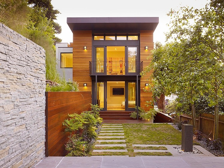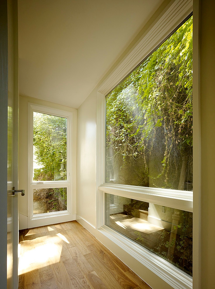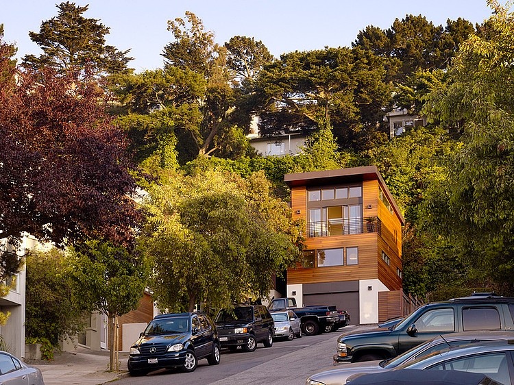 Tucked into a hillside site at the end of a cul-de-sac, this transformation of a 1930’s Deco house in San Francisco’s Cole Valley addresses a number of complicated site conditions. Roof forms vary to address views to the east and north and combine with well-placed skylights to allow sunlight into all areas of the house despite its hillside setting. A central stair core carved into the hill draws visitors to living spaces placed on the top floor to maximize access to light and views.