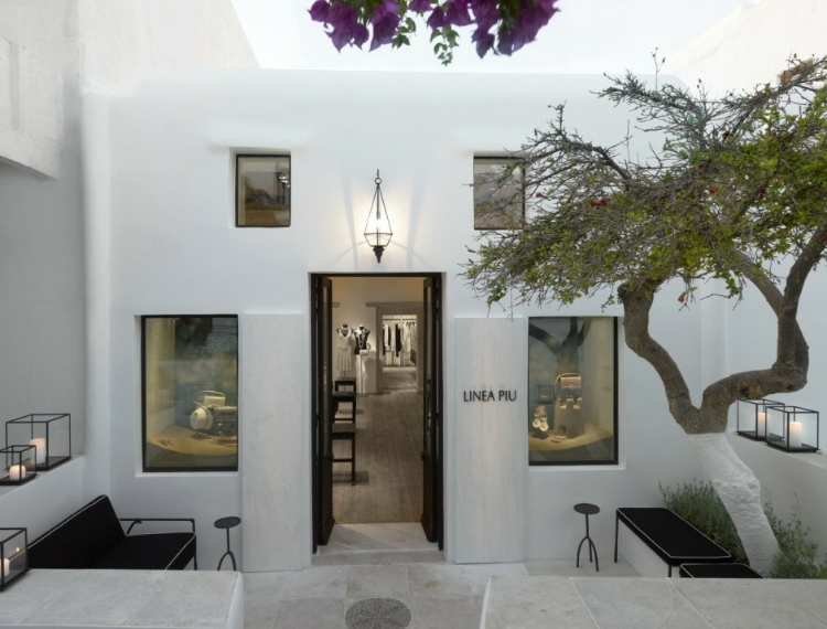 Linea Piu Boutique designed by Kois Associated Architects can be found on the Greek island of Mykonos. It carries some of the highest end women’s wear brands in the luxury retail market: Chanel, Tom Ford, John Galliano and Blumarine. Let’s take a look at the interior …