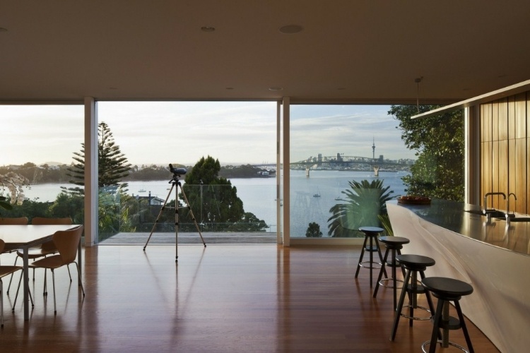 The Birkenhead Point House by Crosson Clarke Carnachan Architects is a stunning glass house that sits on a hill above the Auckland, New Zealand inner harbour. This boxy house is full of geometric patterns, and offers breathtaking panoramic views.