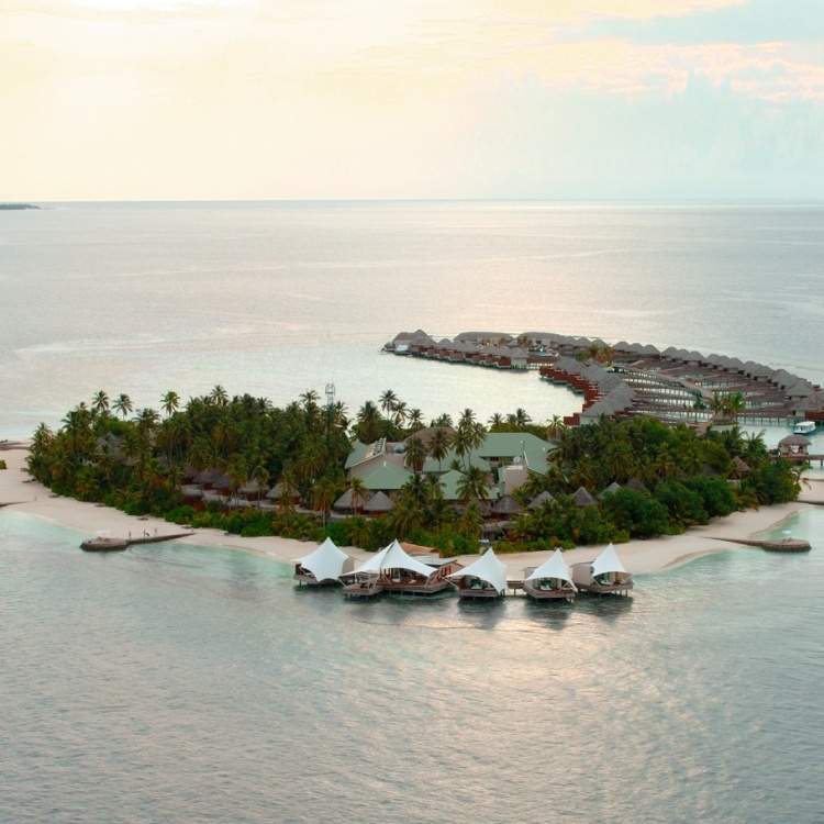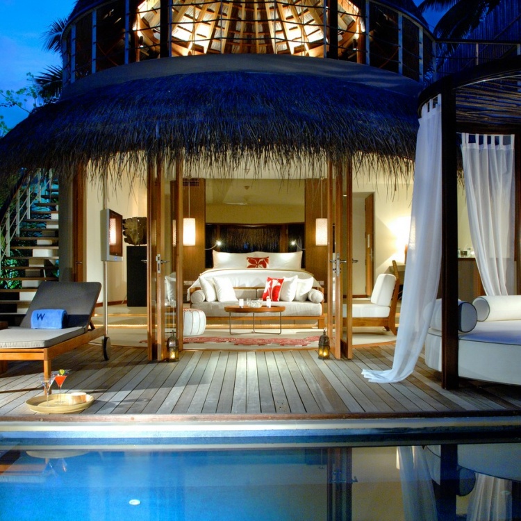The W Retreat first opened on the 23rd September 2006 and has firmly placed itself in the top band for luxury resorts and destinations. The stylish group of ultra-chic hotels W’s new premier resort is set on the exclusive and very exotic island of Fesdu. With its contemporary and cutting edge approach focused on a lifestyle-oriented concept, this resort is in perfect harmony with the island. Traditional Maldivian exteriors conceal contemporary interiors with sweeping arcs of gleaming white sand and calm turquoise waters. Whatever you want, Whenever you want it is the philosophy of W hotels throughout the world; and in conjunction with the famously charming service of the Maldives, this is a winning combination.