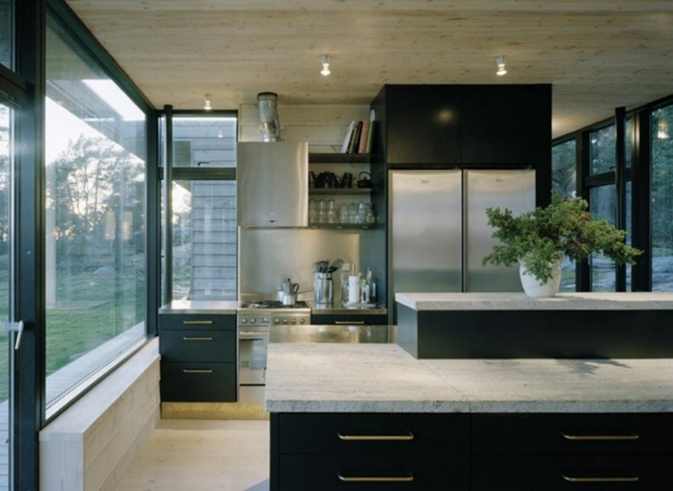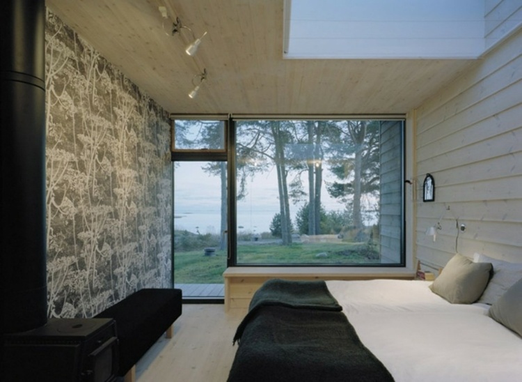 This summer house designed by Waldemarson Berglund Arkitekter offers views of the sea from every angle. The building settles on the boarderland between rocks, grass and water. The load-bearing walls are built from hand-picked panels of Swedish pine, cut to a rough surface.