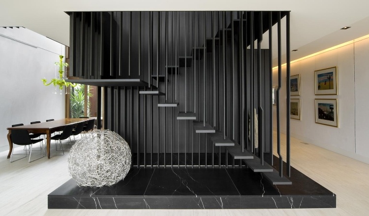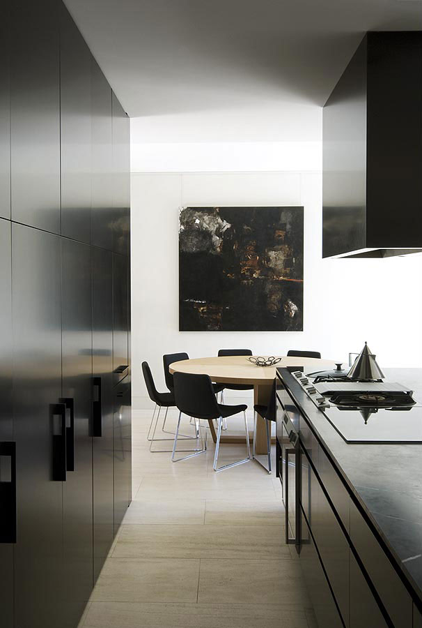 This project involved major extensions and alterations to a property in Middle Park. Our brief was to create a relaxed family home with generous spaces for entertaining. A striking new three level residence has been created behind an existing facade. The limited palette of dark and light natural materials combines with the beautiful natural light to create a dramatic family home.