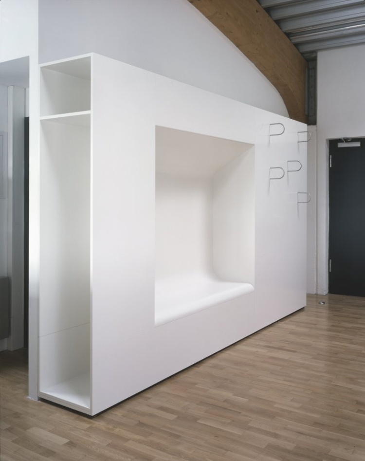 Implantation is usually a chirurgical procedure, in which for support and reconstruction of the functionality of a body or a body part, tissue or bones are implemented. The material should be pure and universal in order for the body to adapt to it. The client, the agency for interconnected brand interaction ‘argonauten G2’ in Berlin, had to face the problem that their rented facilities became to small and tight. They went on to rent further stories that have now been completely redesigned and restructured.
