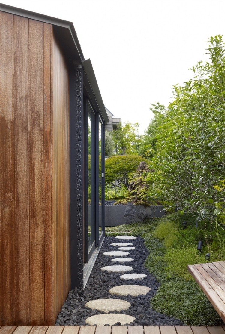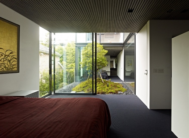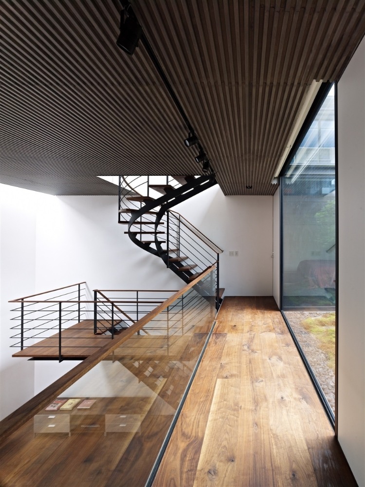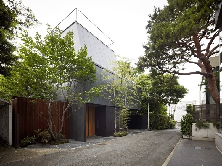 House S is located in a quiet residential area in a center of Tokyo. The site is of the house is a cul-de-sac, removed from the main thoroughfares, and was once a samurai residence, so their are old pine and zelkova trees in the area. Such surroundings, even in the midst of the city, significantly impacted the design.