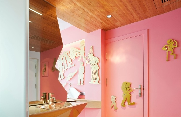 KARAGIOZIS, a mischievous but much loved character from Greek folklore. In their reworking for NEW, the old shadow figures are carved, covered with gold and mounted on the room walls like a moving fairytale. Four different stories have been displayed, each highlighting the character’s adventures, Karagiozis Doctor, Karagiozis Sailorman, Karagiozis’s Wedding, and Karagiozis Astronaut.