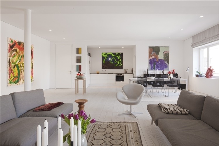 Above the gallery is Mikael Andersen’s own flat, which clearly reflects the owner’s profound passion for art and design as well as his Danish background. The interior revolves around Scandinavian design. Old classics as well as new designs adorn the home.