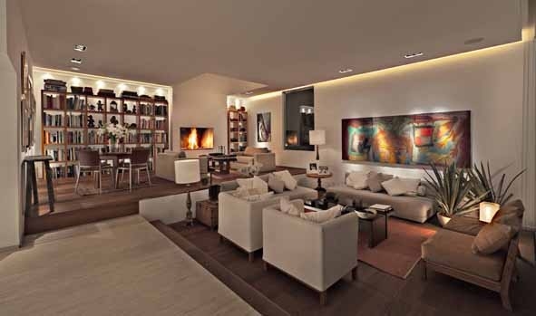 In the interior design the ladder – that gives access to the public and private areas of the house – is the central axis. All the walls around it were removed to integrate all the spaces. In the living room the generous existing height was used to play with the plafonds and the indirect lighting, enhancing the deep sensation of the space and highlighting the artwork.