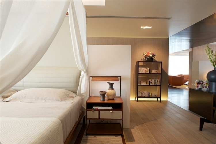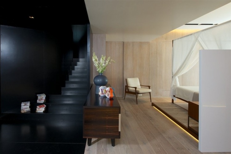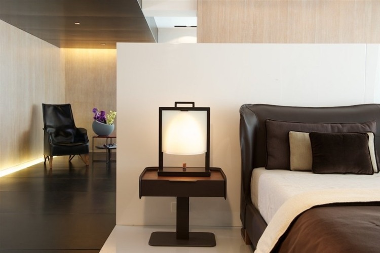 Traditionally Giorgetti furniture pieces have been associated with the highest degree of craftsmanship in leather and timber and we chose to juxtapose these against a very modern palette of materials like limed oak, resin floors and blackened metal.