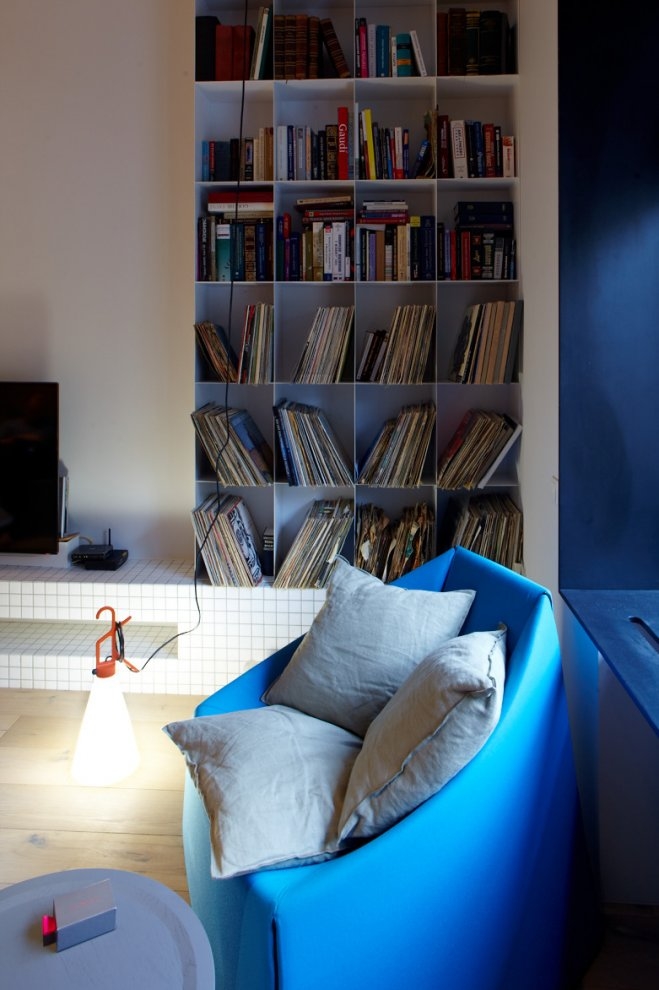 This 2012 apartment was created from a C19TH building, built on three levels over an arch and a road. On the first level we organized the guestroom and the kitchen area.