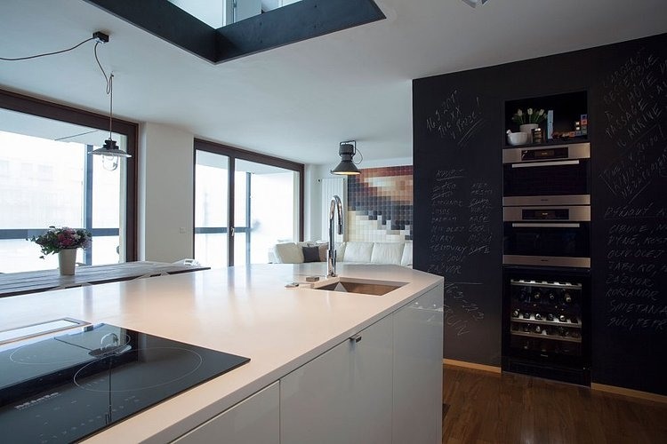 Quite original 230 sqm triplex home redesigned by Barbara Bencova featuring an industrial look balanced with modern design and materials. This property is located in former industrial building, in Prague, Czech Republic.