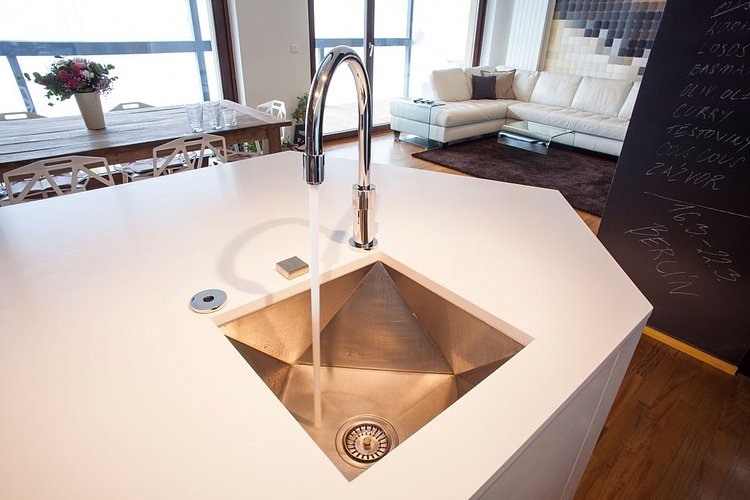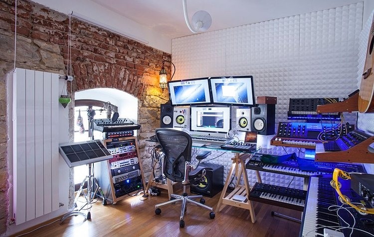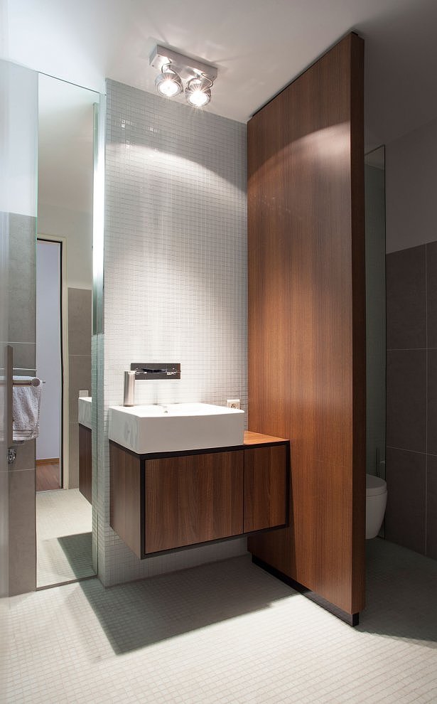 Area: 230 sqm Located in the Cornlofts, a former industrial building, in Prague´s quarter Karlin, reconstructed for the residential use based on the design of Baumschlager Eberle Architekten from Wien . The design for a Live/ Work unit eschews conventional loft typologies in order to maximize square footage and natural light. Portions of the original floor plate is removed while new glass plates are inserted into a central void. As a result, this formal gesture increases overall square footage while simultaneously providing unexpected views and natural light throughout. The main goal of the loft´s redesign was to bring back the original industrial look balanced with the modern design and materials. The lowest level contains the entrance space with custom-made closet, owners music studio, nursery and guest room with bathroom and utility areas. The second level has a public character. On one side, there´s an open office with the roof window and view over a sculpted staircase connecting the three levels of the loft. On the other side, there´s living and enternaiting space vertically connected by partially glassed floor plate of the third level. The living space is furnished with the vintage/modern custom-made furniture completed with the pixeled piano mozaic and other music related elements refering to the owners proffesion. Besides the entertaining space, the third level also includes the master bedroom with a bath and two dressing rooms.