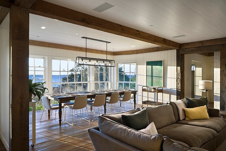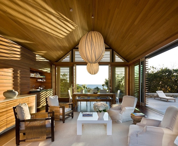 On a rolling site overlooking the Atlantic Ocean, this New England beach house by Ike Kligerman Barkley brings together two contrasting ideas – nineteenth century Shingle Style design, and a contemporary preference for material and textural expression over architectural detail. While the exterior captures the local design aesthetic, the interior treats light, space and surface in a distinctly modern fashion.