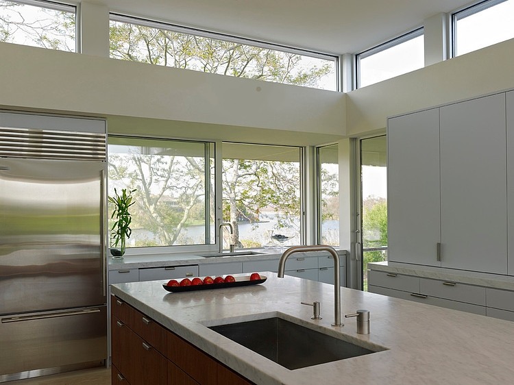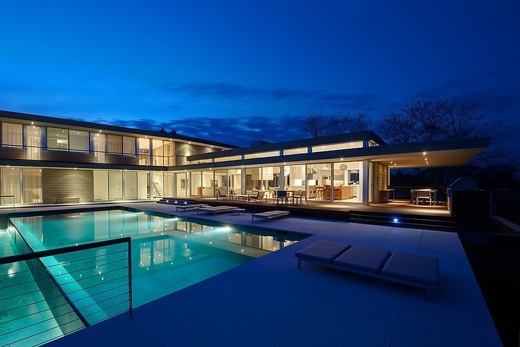 This modern luxurious single family property located in Water Mill, NY was designed by Stelle Lomont Rouhani Architects.