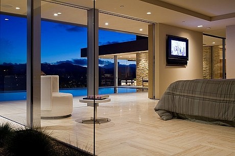 The site is a half-acre south-facing hillside parcel, with unobstructed views of San Francisco Bay to the south, east and west. Responding to the physical conditions of the site, the new house is almost entirely opaque on the north side where a new entrance motor court is defined by a rhythm of five ‘free-standing’ stone-clad walls. Slivers of glass separate the stone panels, creating a strong rhythm while giving little hint of the extraordinary spaces and views on the other side.