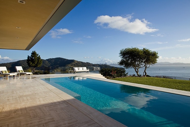Perched above San Francisco Bay, this contemporary single family residence was redesigned and extended by Swatt | Miers Architects.