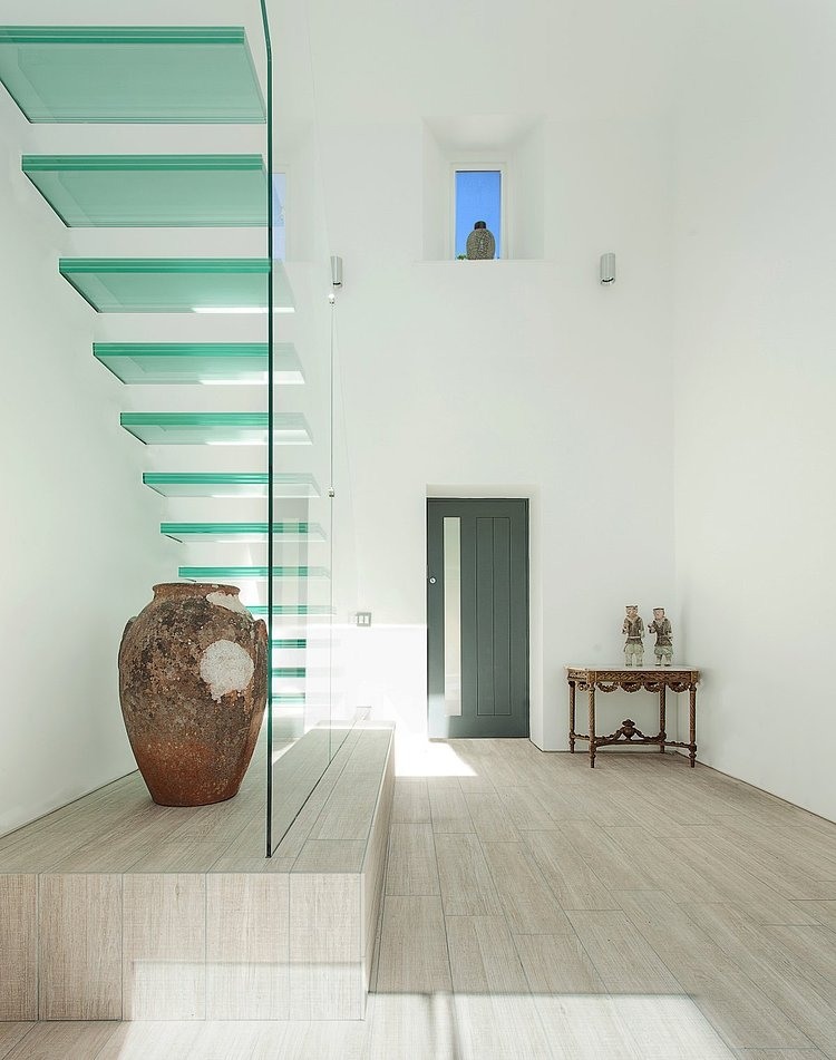 The rest of the house is finished to a minimal and clean appearance to allow the functional glass structures to stand out as exquisite pieces of sculptural art in their own right.