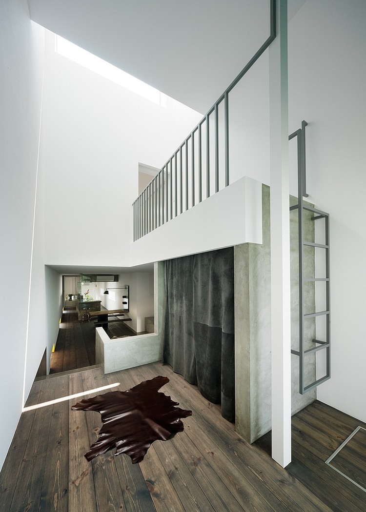 The project is for the house owned by a young couple and is planned at the unique site 4 meters wide and 35 meters deep. The geometrical restriction of the site is reflected in the internal composition of the house.