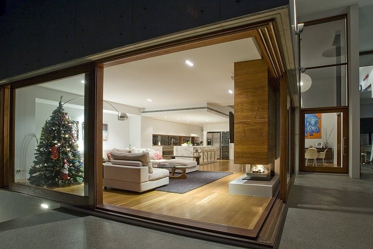 This river front design is located on an older established residential island that is undergoing redevelopment. Intimately designed by the architect for his young active family, the residence reflects their dynamic outdoor lifestyle. With easy access to the river, the house draws towards the southern waterfront and turns away from the street.