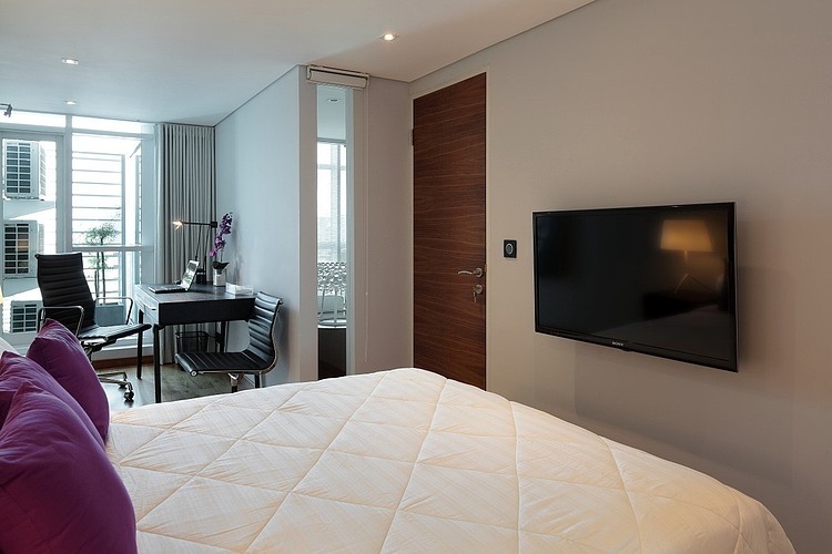 Contemporary 225 m2 apartment designed in 2012 by Patrick Maille situated in Jakarta, Indonesia.