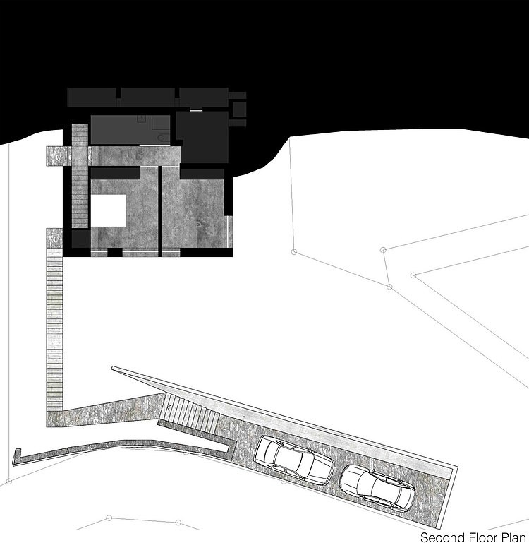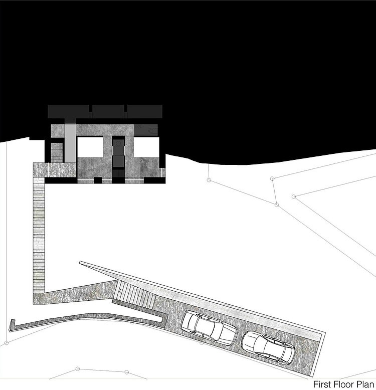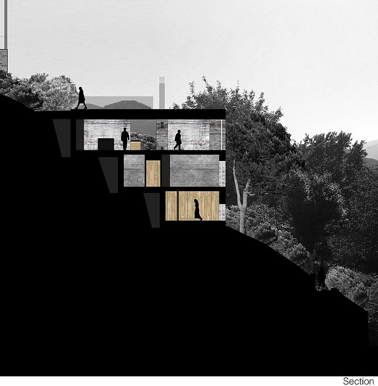 This house is standing on a steep slope in S. Abbondio, it’s designed for two people and their guests. The property adjoins on three sides to existing and new constructions, while to the downhill side it’s attached at the access road and above it provides free views to the Lake Maggiore and to the mountains. The cleareasy-cut volumetry and also the naturalistic materializing of the concrete in the same colour like the natural rocks, integrates the new building with caution in the heterogeneous area. Concrete gets the natural stone of the modern era,