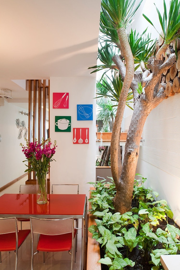 Typical townhouse of Vietnam is influenced by the old habit of old city commercial tradition where every house tries to get in touch with the front street and resulted in very long and narrow sites with very limited façade, some of them even smaller than 4m (13ft). Similar examples can be found in 36 streets of Hanoi or ancient town of Hoi An. Expanding in city population nowadays led to the necessity of putting more slabs in the house and making them higher, this also makes it harder to ensure the living condition of them which demands natural ventilation and lighting. With the concept of using green “intermediate space”, this project is hoped to be a new model for such type of Vietnamese townhouse providing the people the enjoyable and relaxing living condition.