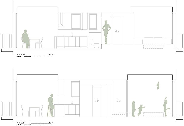 In a refurbishment so personalized, the objective was to solve the functional necessities of the client without giving up to the sensation of an open, amble and luminous space. A studied arrangement of versatile spaces multiplies the possibilities of a dwelling that had a lot of potential to begin with, resulted in an intervention that incorporates the pre-existing features of the home with those of its future inhabitants.