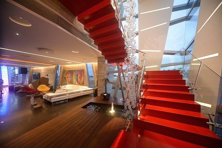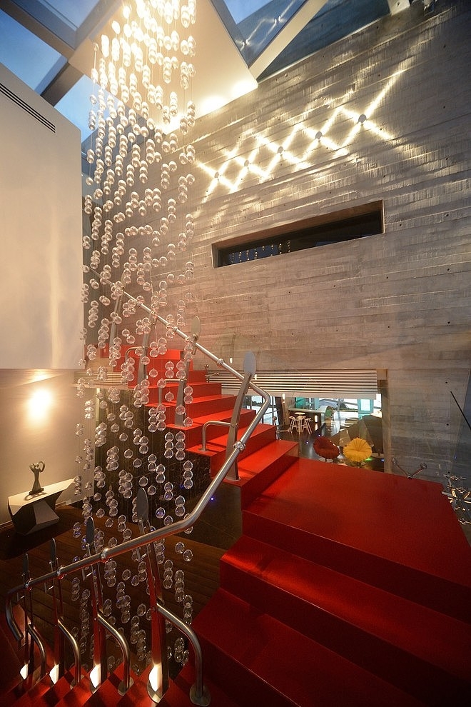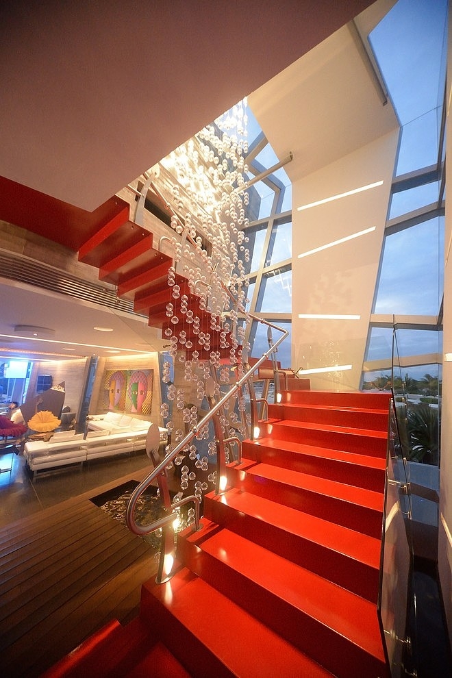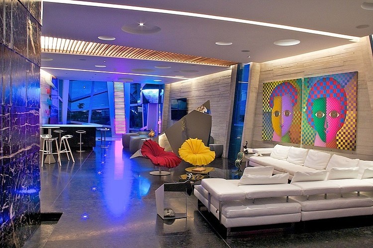 The project “Casa Gòmez” was developed and built by SOSTUDIO between 2011 and 2012 in the residential area at the Puerto Cancun development. By an approach to the deconstructive architecture, the design is organized by combining interior and exterior areas as a single space through big hidable windows, thus favouring the main views to the canal and the hotel zone of Cancun. The choosing of materials and textures was key to create unusual environments of marked avant-garde tendency, combining the balance among the apparent concrete walls, granite and wood floors, big windows and the glass and alluminum covers, besides specific Bisazza mosaic accents. Artwork, sculptures and custom design elements were always considered crucial into the design concept, as the ultimate and most effective complement for architecture to achieve the capacity of transmitting emotions. Carefully selected by SOSTUDIO and the clients, every artist and designer involved was commissioned to create specific pieces for the project. The result shows an intense team work and the freedom given to SOSTUDIO by the clients to seek an innovative expression.