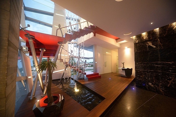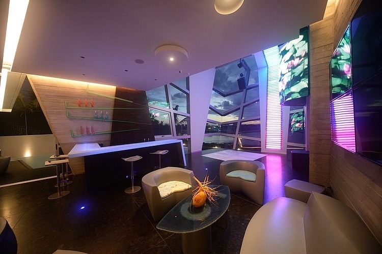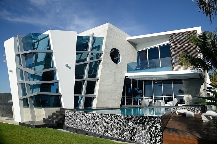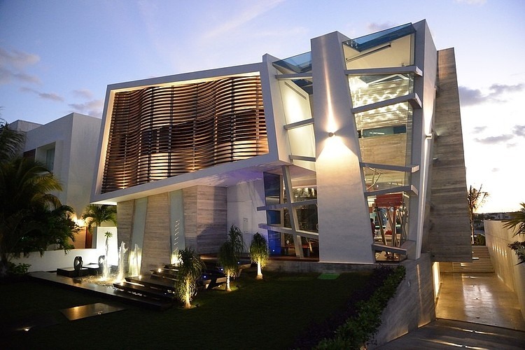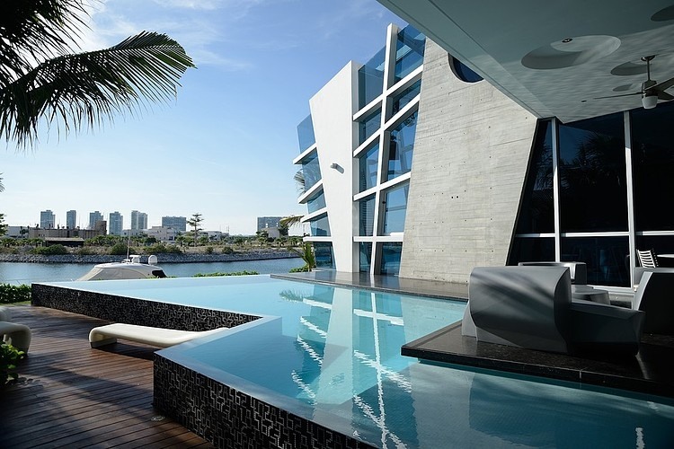 Luxurious futuristic waterfront residence designed by Sergio Orduña Architects (Sostudio) situated in the residential area of Puerto Cancun, Mexico.