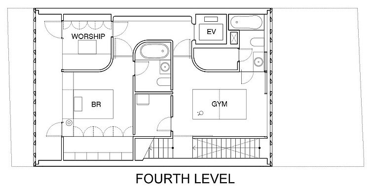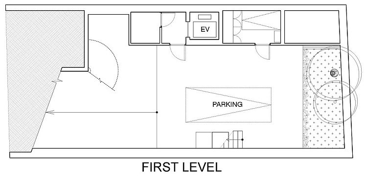Bedrooms and other small rooms are contained in the floating semi-closed volumes to enhance security and privacy. On the other hand, the open in-between spaces are designed to be independent living spaces for two families.