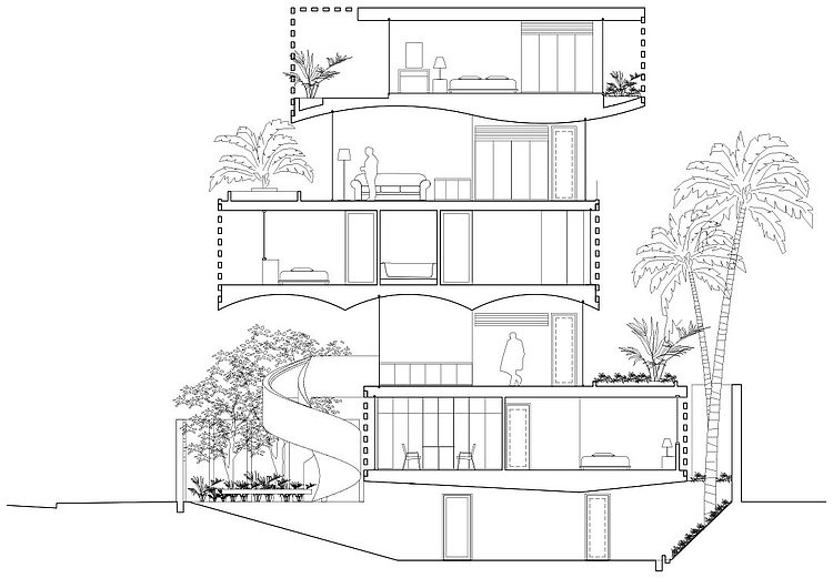 While this house looks different from the stereotypical townhouses in Ho Chi Minh City, all the architectural solutions are derived from the local lifestyle and wisdom. The House offers an interpretation of the ecological lifestyle in the modern tropical city. It is where modern and natural life are compatible with each other.