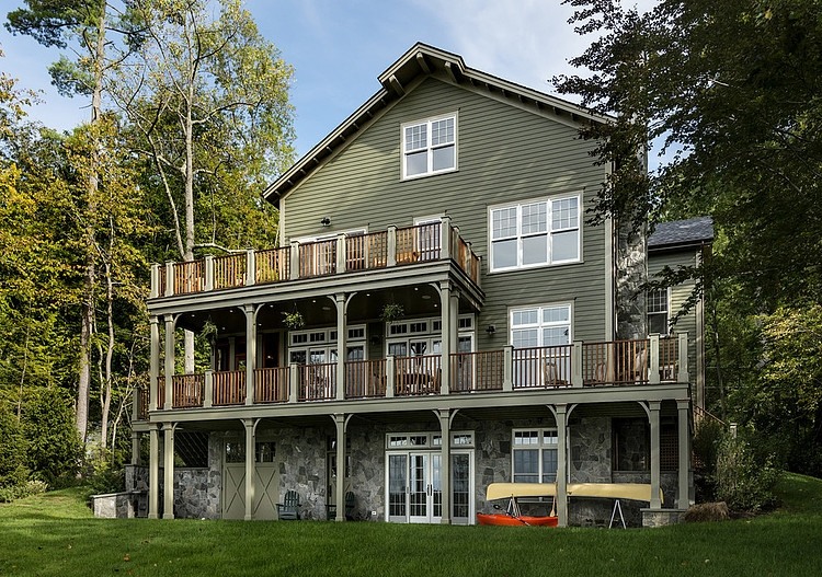 Traditional three-storey single family lakeside residence designed by Crisp Architects situated in New York, United States.