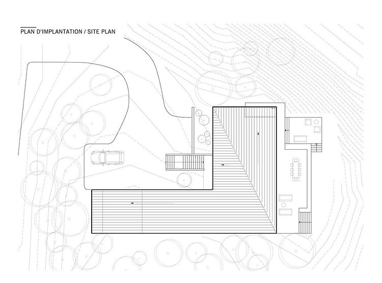 After selling their previous country house because of the lack of natural light, a couple and their 3 kids decided to buy an empty lot and build a custom home to better suit their needs. They found a parcel of land with southern exposure at vast views of the lake ‘Lac-de-la-Cabane’.
