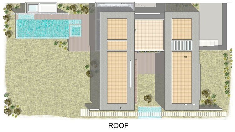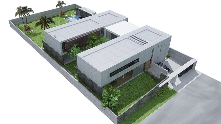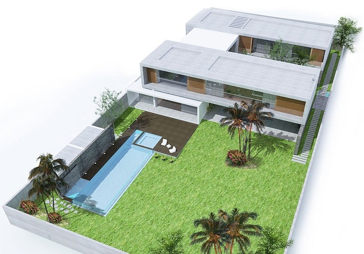 In this way, we provoke a sequence of spaces as stripes that are parallel to the entry edge. From the street, a first strip contains the entry garden and garage, then a strip roof encloses the entry, living and dining; Fringe follows articulator and kitchen courtyard, then the social fringe where the grill area and being summer, living room and dining room, and finally, the fringe of large back yard where the pool, sauna and pool.